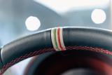 - Volante in Pelle con inpunture di colore Giallo e puntatore con finitura Tricolore
