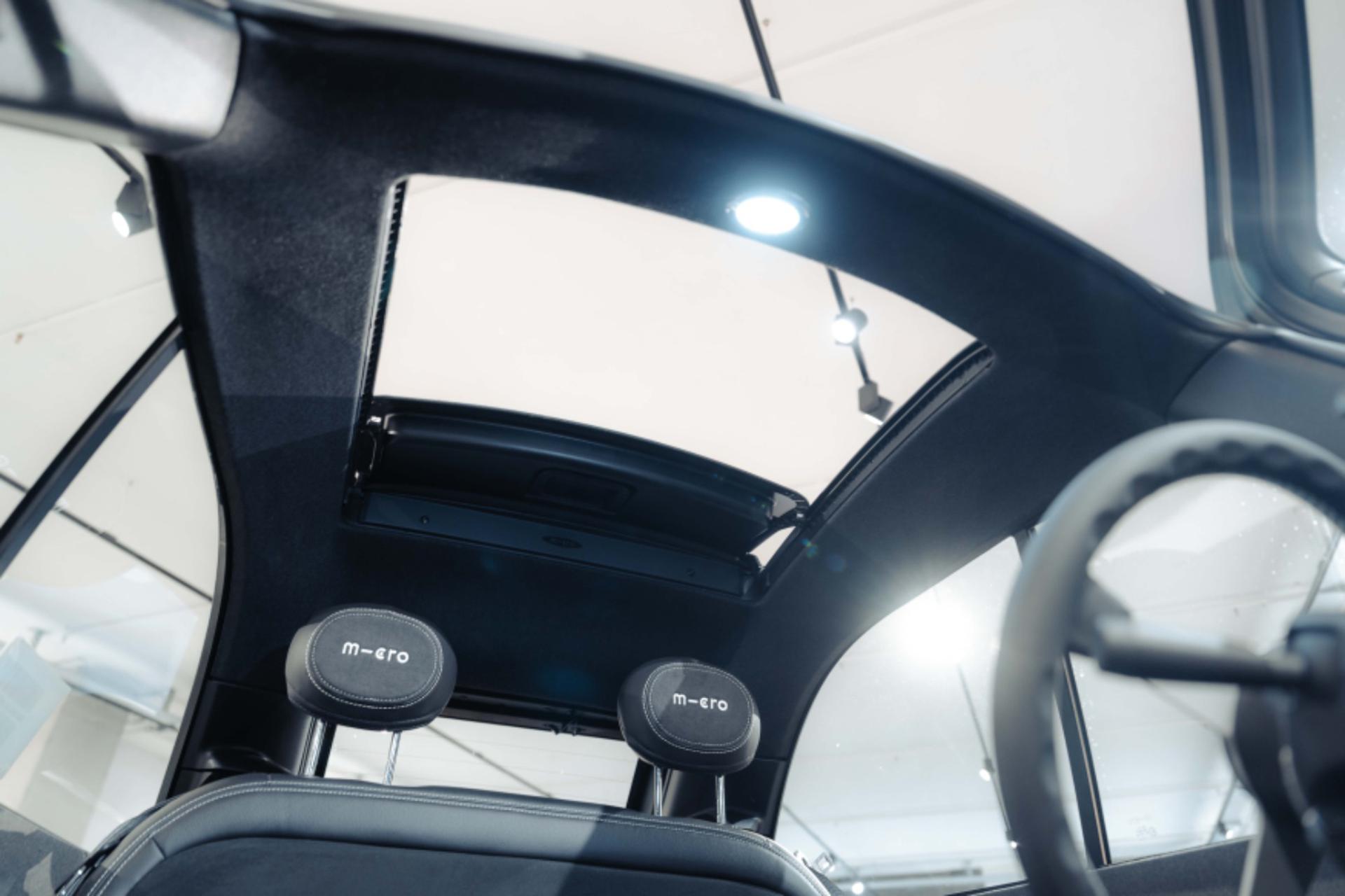 - Pannelli laterali e cruscotto rivestiti in in pelle scamosciata vegana