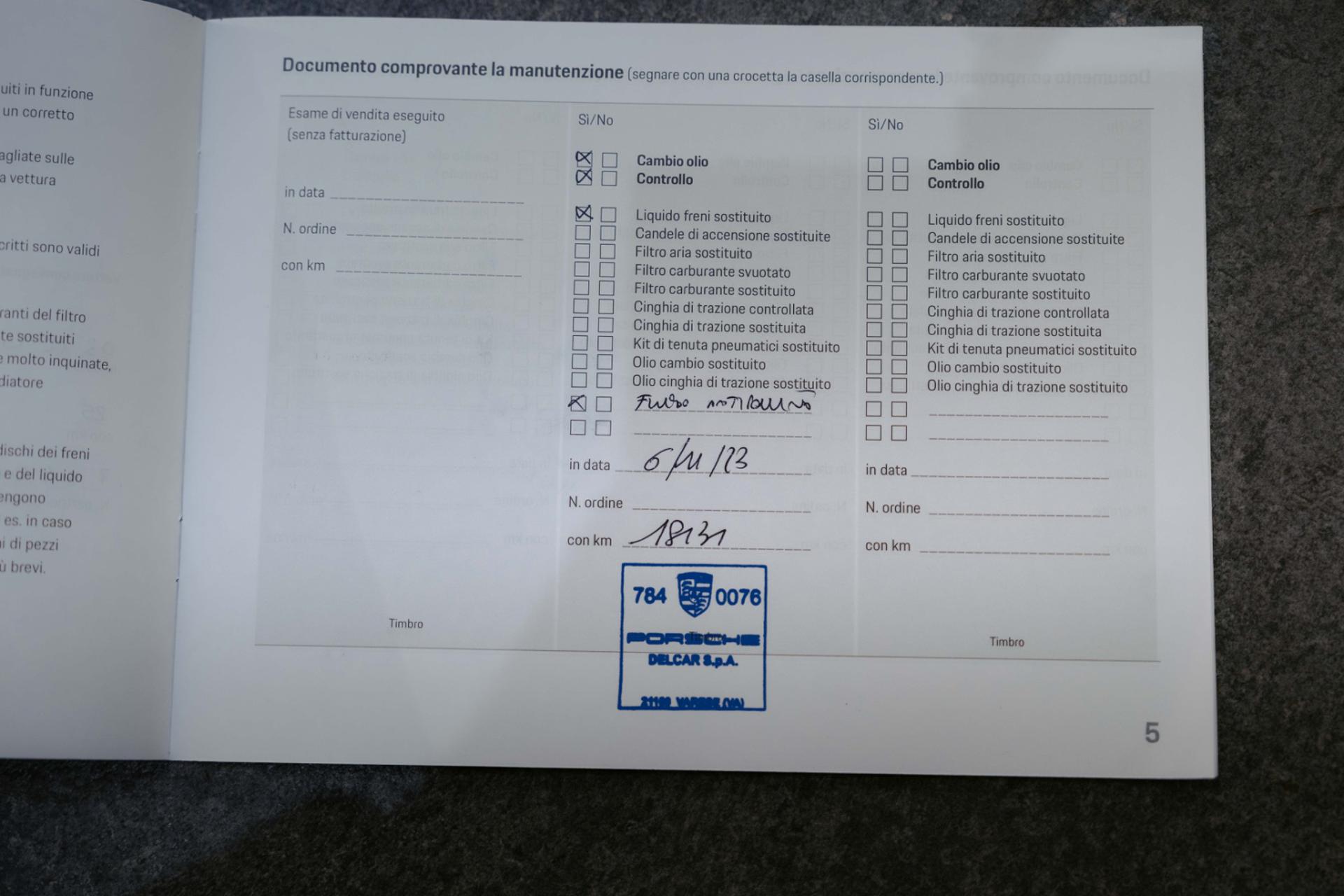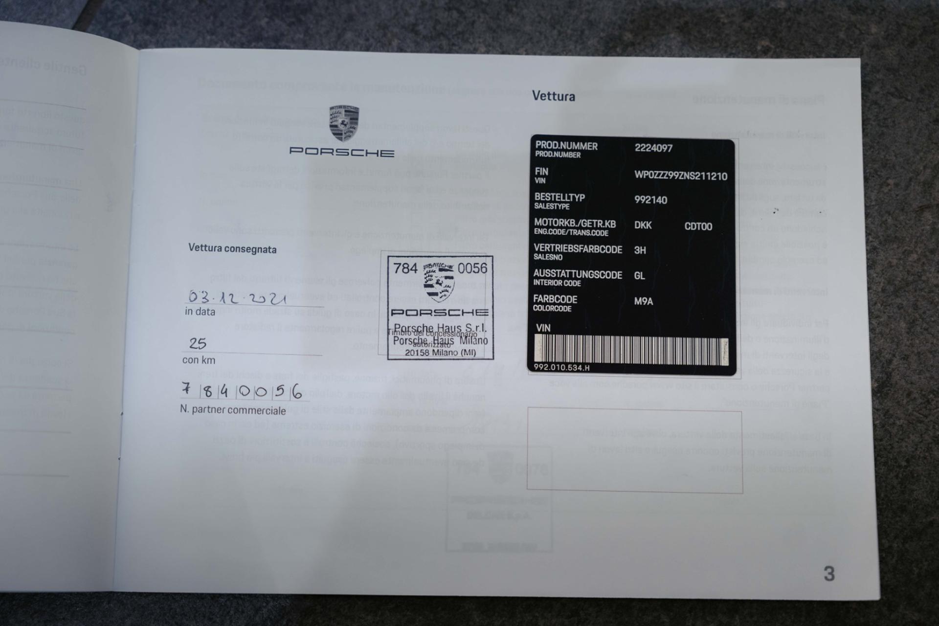 N.B.VETTURA UFFICIALE PORSCHE ITALIAUNICO PROPRIETARIOVISIBILE IN SEDE