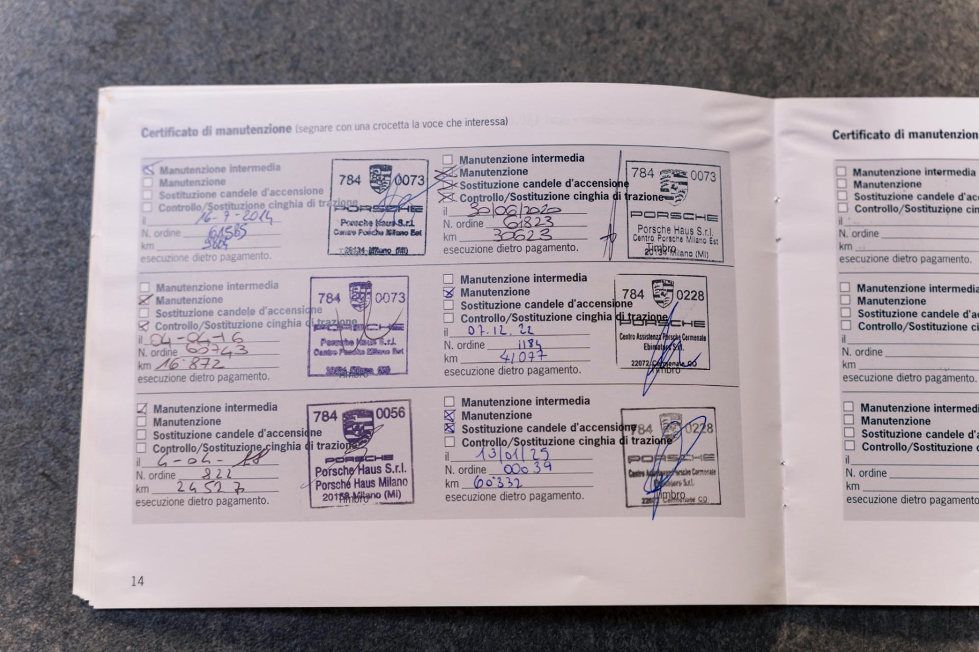 N.B.VETTURA UFFICIALE PORSCHE ITALIA!TOTALMENTE TAGLIANDATA PRESSO LA RETE PORSCHE UFFICIALE SERVICE ESEGUITI PRESSO I CENTRI PORSCHE:07-'14 A KM. 9.800 04-'16 A KM. 16.80004-'18 A KM. 24.50006-'20 A KM. 30.60012-'22 A KM. 41.07701-'25 A KM. 60.332