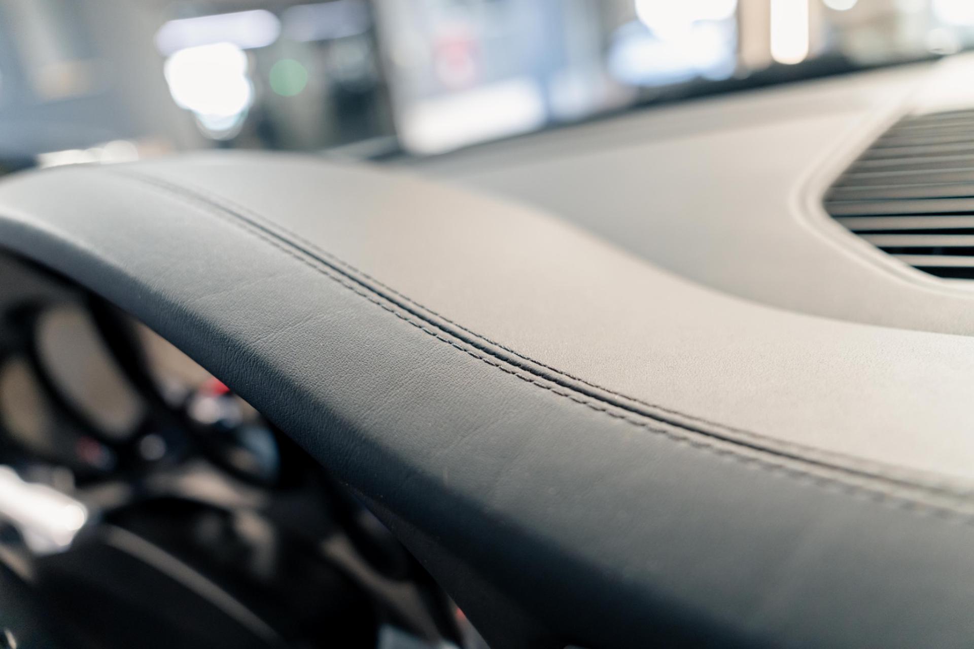 - L'interno dell'abitacolo è totalmente ricoperto in pelle (i pannelli portiere sono totalmente ricoperti dalla pelle e sono abbelliti dalle doppie cuciture nelle corvature dello stesso, al cruscotto totalmente in pelle nera fino ai sedili che sono rifiniti in pelle in ogni loro parte!)