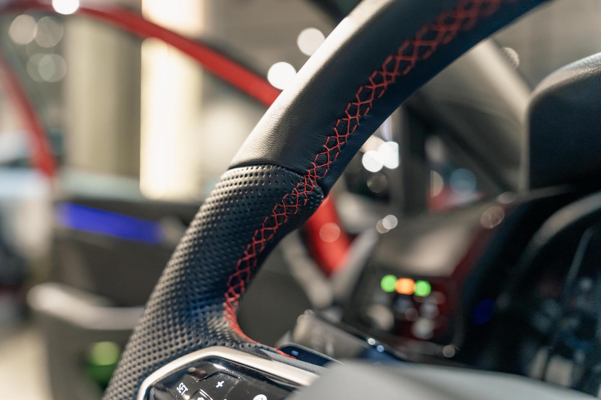 - Volante sportivo in pelle traforata con inpuntura contrasto di colore rosso